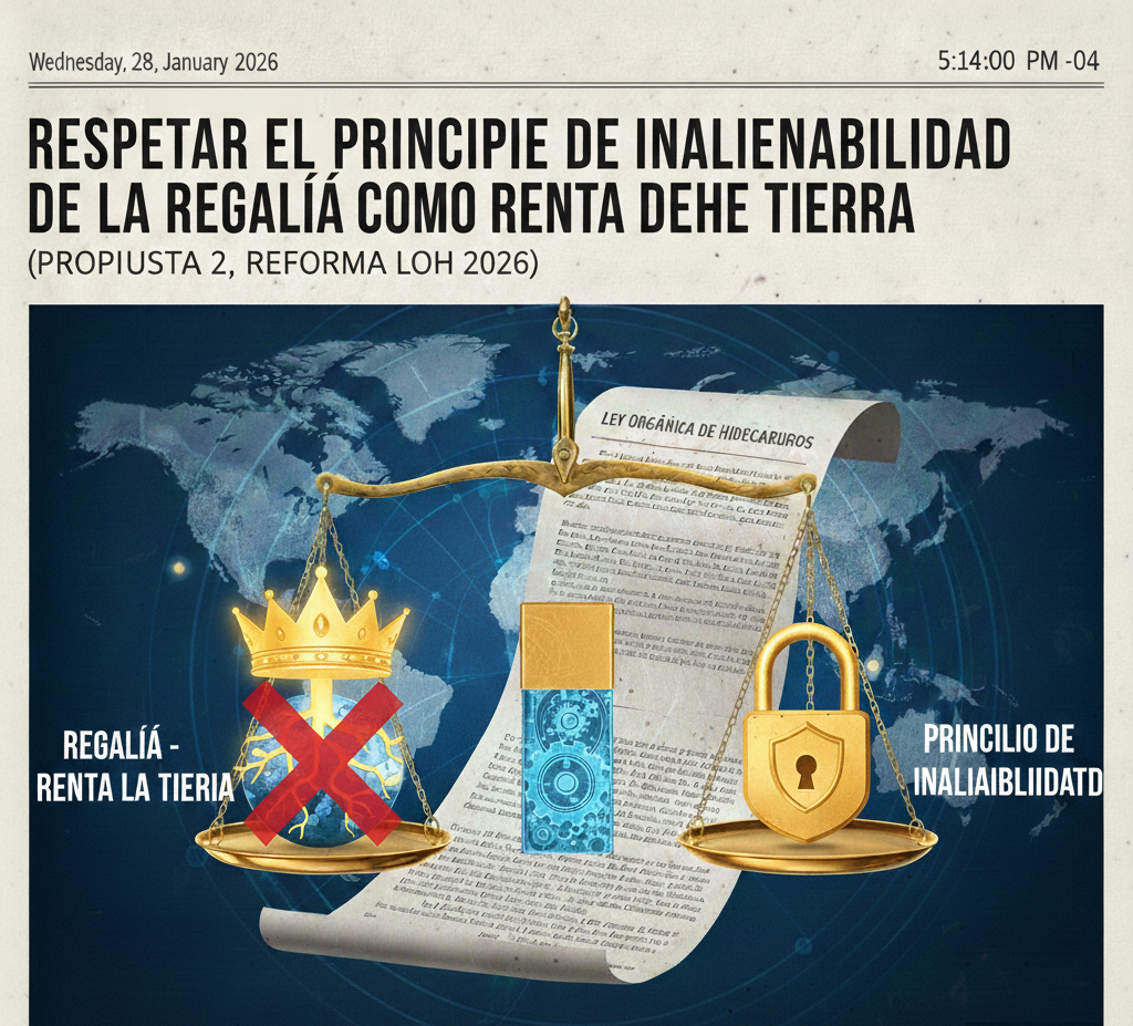 En consecuencia, el rechazo a la modificación de las regalías en la Asamblea Nacional debe fundamentarse en la defensa de la Constitución y en la exigencia de que el riesgo comercial y operativo sea asumido por las empresas, mientras que el beneficio por la propiedad del recurso permanezca intacto para todos los venezolanos y venezolanas.